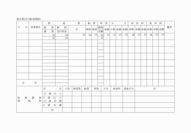 第6条 旅費条例第15条第1項に規定する旅費請求票の様式は、次の区分に従い、当該各号に掲げるところによる。